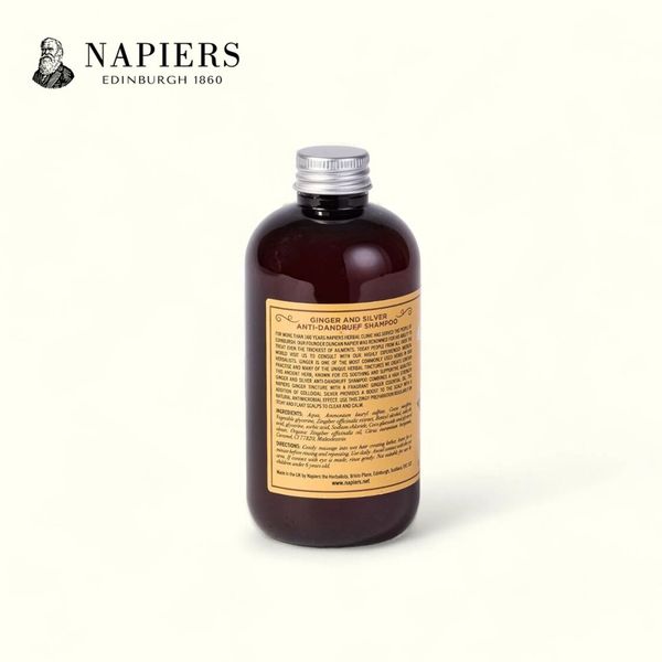 Napiers 姜根膠性銀去屑洗髮精採用精心配製的原始混合物,結合了生薑根和膠體銀提取物,有助於舒緩和滋潤頭皮。